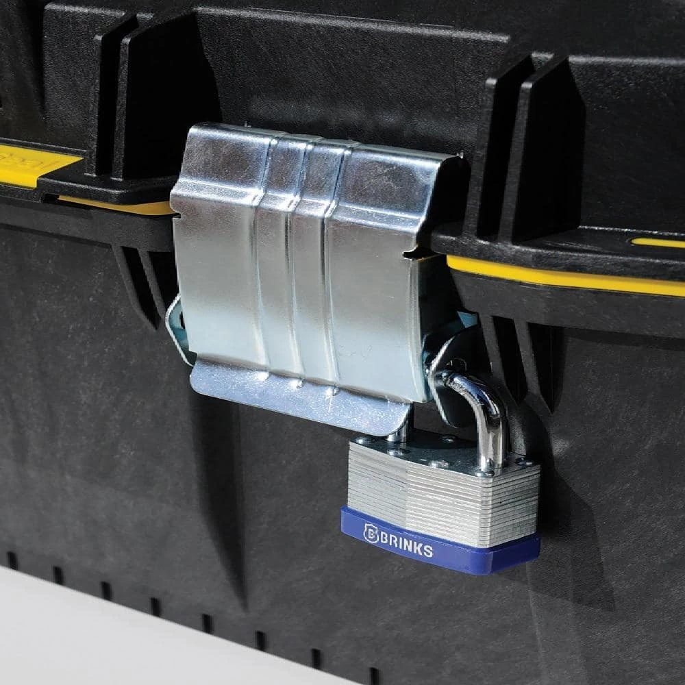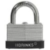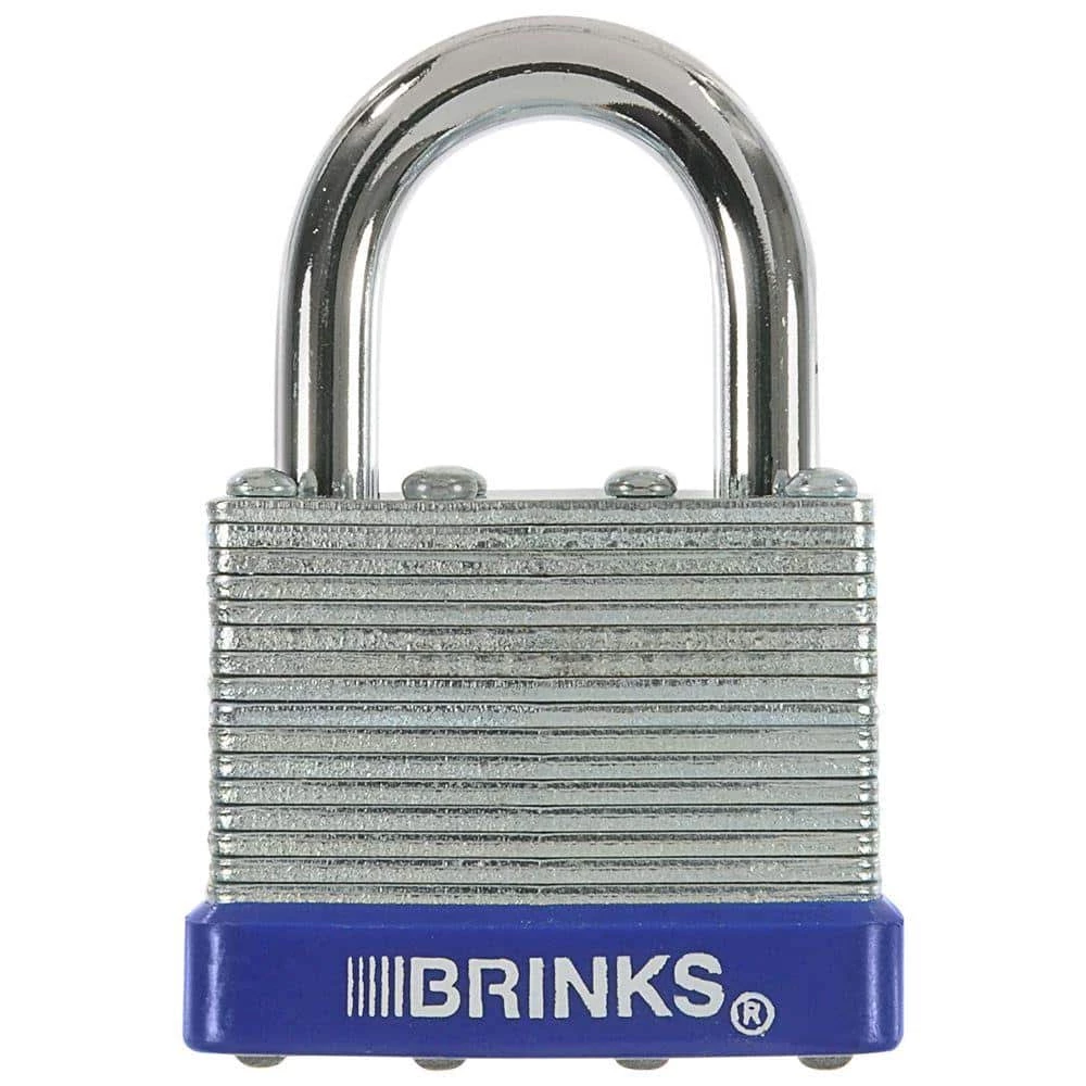 The Brinks Security 1-9/16 in. (40 mm) Lock is constructed of laminated steel with chrome plated, hardened steel shackle. This lock is equipped with a brass pin tumbler cylinder for a long lasting, smooth working action. It has been designed with a dual lever locking mechanism for increased security.