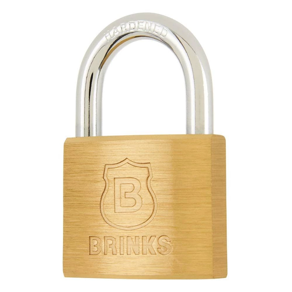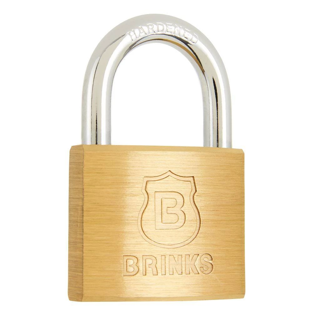 The Brinks Security 1-9/16 in. (40 mm) Lock is constructed of solid brass. The lock has a hardened steel, chrome plated shackle. Lock is equipped with a brass pin tumbler cylinder and a dual lever locking mechanism.