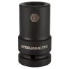Every mechanic knows that having a reliable set of tools can make your life easier when working on heavy-duty vehicles and equipment. The Steelman PRO 79323 1 in. Drive Budd Wheel 38 mm Hex x 20 mm Square Combo Impact Socket is specially designed to help speed up wheel servicing on large trucks, tractor trailers, buses, and other vehicles using Budd Wheels. The combination hex and recessed square socket performs double duty, fitting both lug nuts and studs, removing the necessity of changing sockets halfway through the job. Made from drop forged and heat treated chromoly steel, this socket features a ball detent recess on the 1 in. drive end to help hold it securely onto ratchets, air wrenches, adapters, and extensions. The socket features a rust and corrosion resistant black phosphate protective coating with laser etched size callouts and markings. Rated to withstand up to 150% of ASME torque requirements for impact tools, can handle tough use in any professional shop / garage, home workshop, or on the work site.