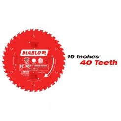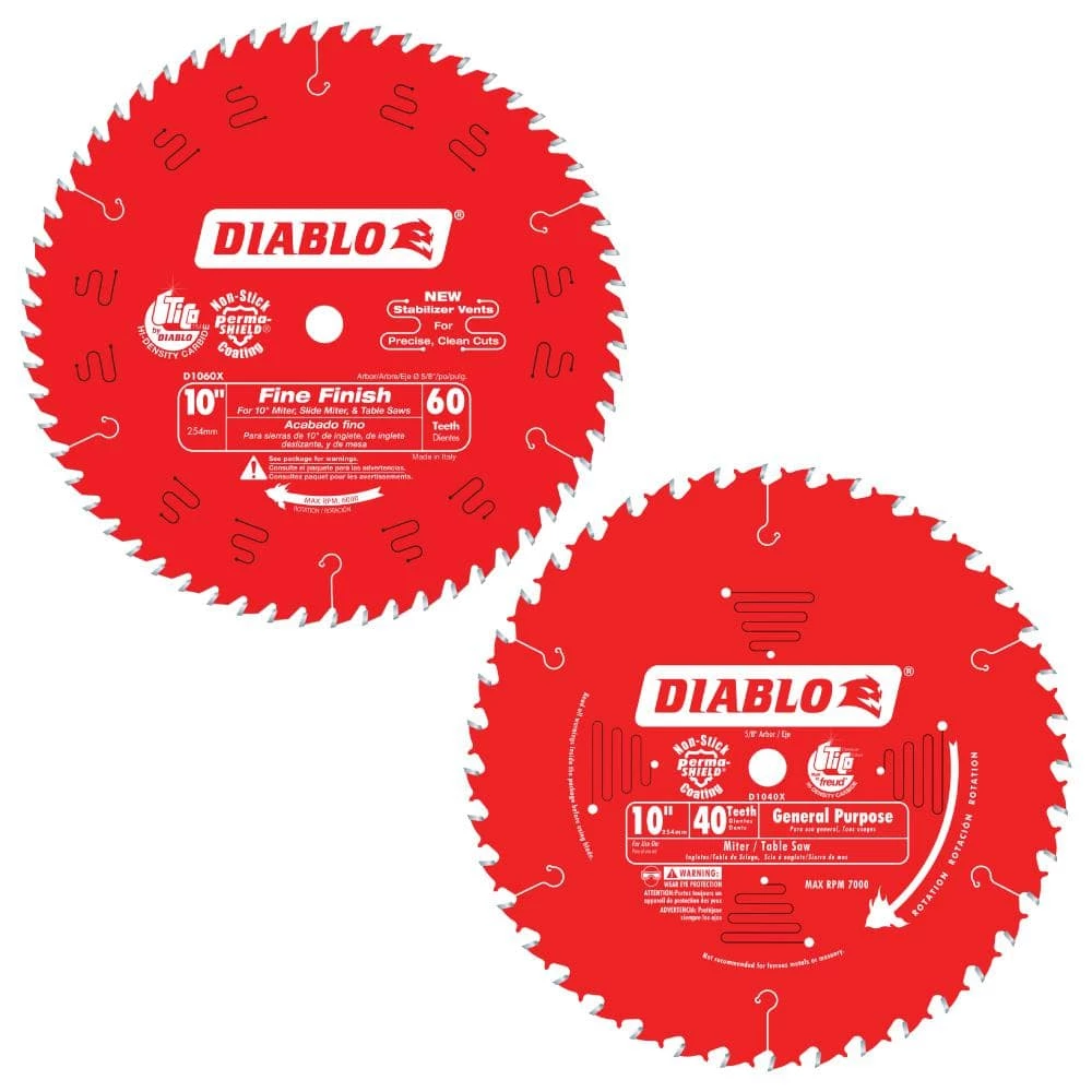 Diablo’s next generation 10 in. x 40-Tooth General Purpose and 10 in. x 60-Tooth Fine Finish Carbide Circular Saw Blades feature new laser-cut stabilizer vents for precise and clean cuts in a variety of wood materials. The advanced stabilizer vents feature a permanent filler baked in from top to bottom for absorbing noise and preventing sideways movement, allowing the blade to slice through wood cleanly, quickly and accurately. Constructed with TiCo Hi-Density special-blend carbide, Diablo’s 10 in. x 40-Tooth general purpose blade produces razor sharp cuts, while the 10 in. x 60-Tooth fine finish blade produces precise cuts and both blades offer up to 5X longer cutting life. The laser cut heat expansion slots allow the blades to expand and contract during use, keeping the cut true and straight. This 40-tooth blade is excellent when working on projects such as decking, framing and building furniture and the 60-tooth blade is excellent for trim work and projects such as building bookcases, cabinets and shelving.