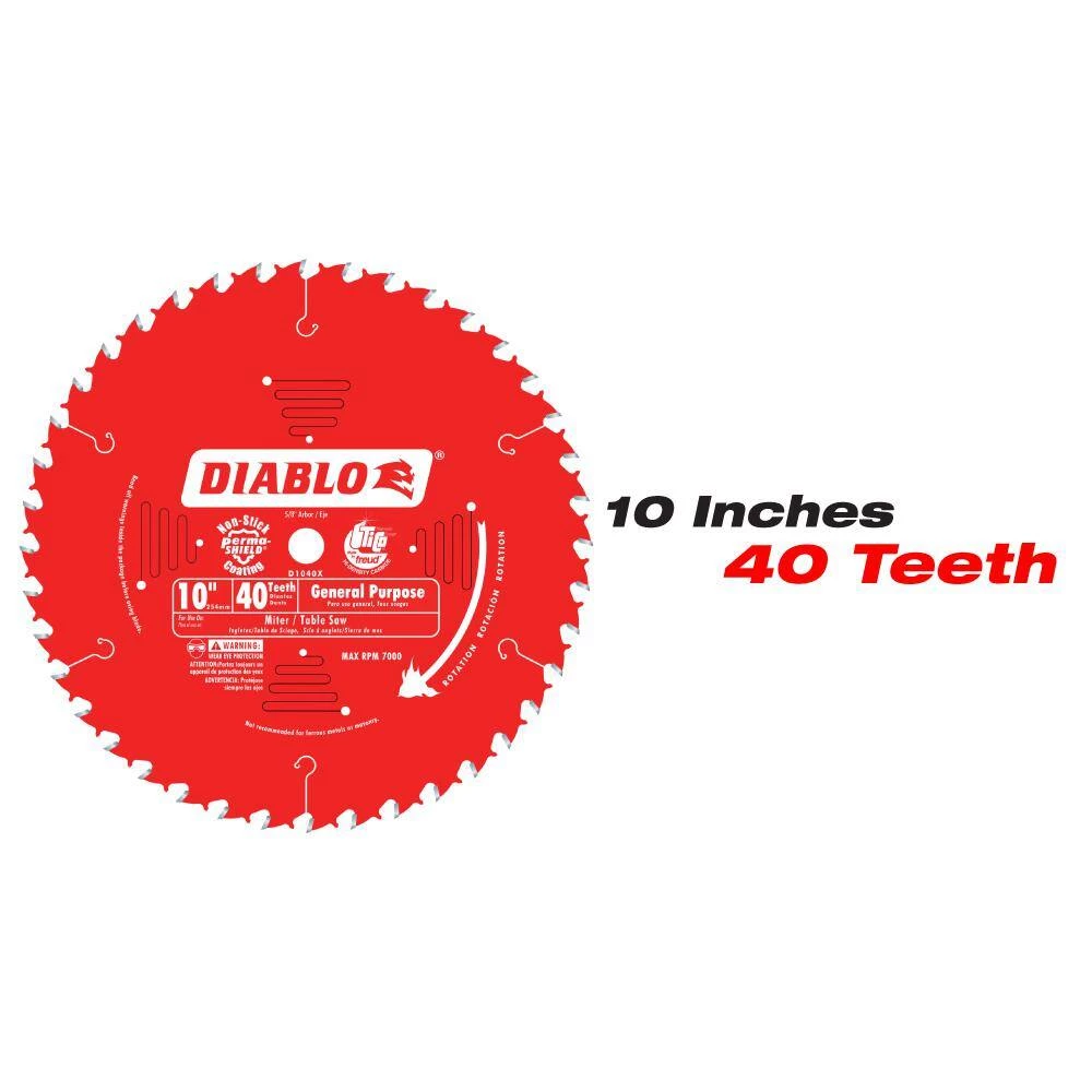 - 10 in. blade can be used on 10 in. miter saws, 10 in. slide miter saws and table saws (portable and stationary)