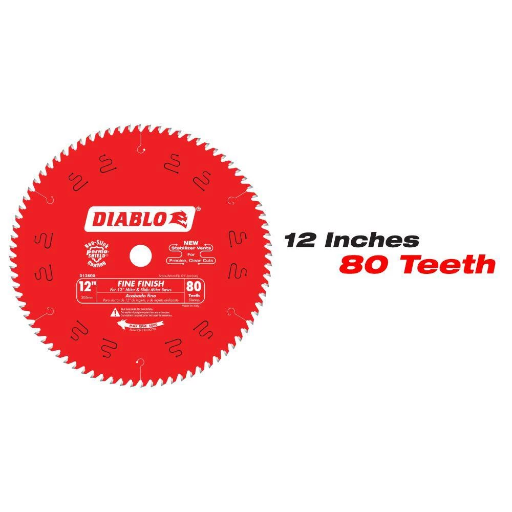 - 12 in. blade can be used on 12 in. miter saws and 12 in. slide miter saws