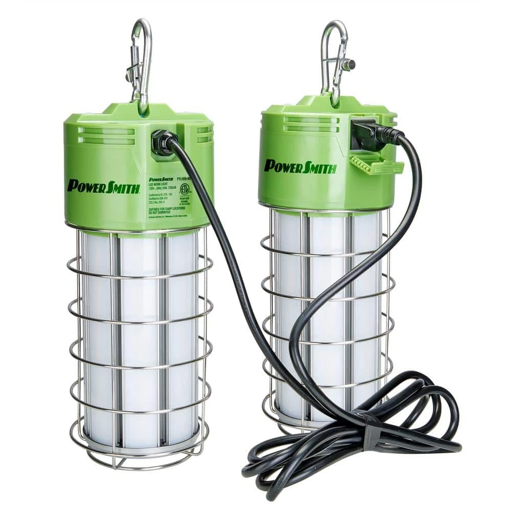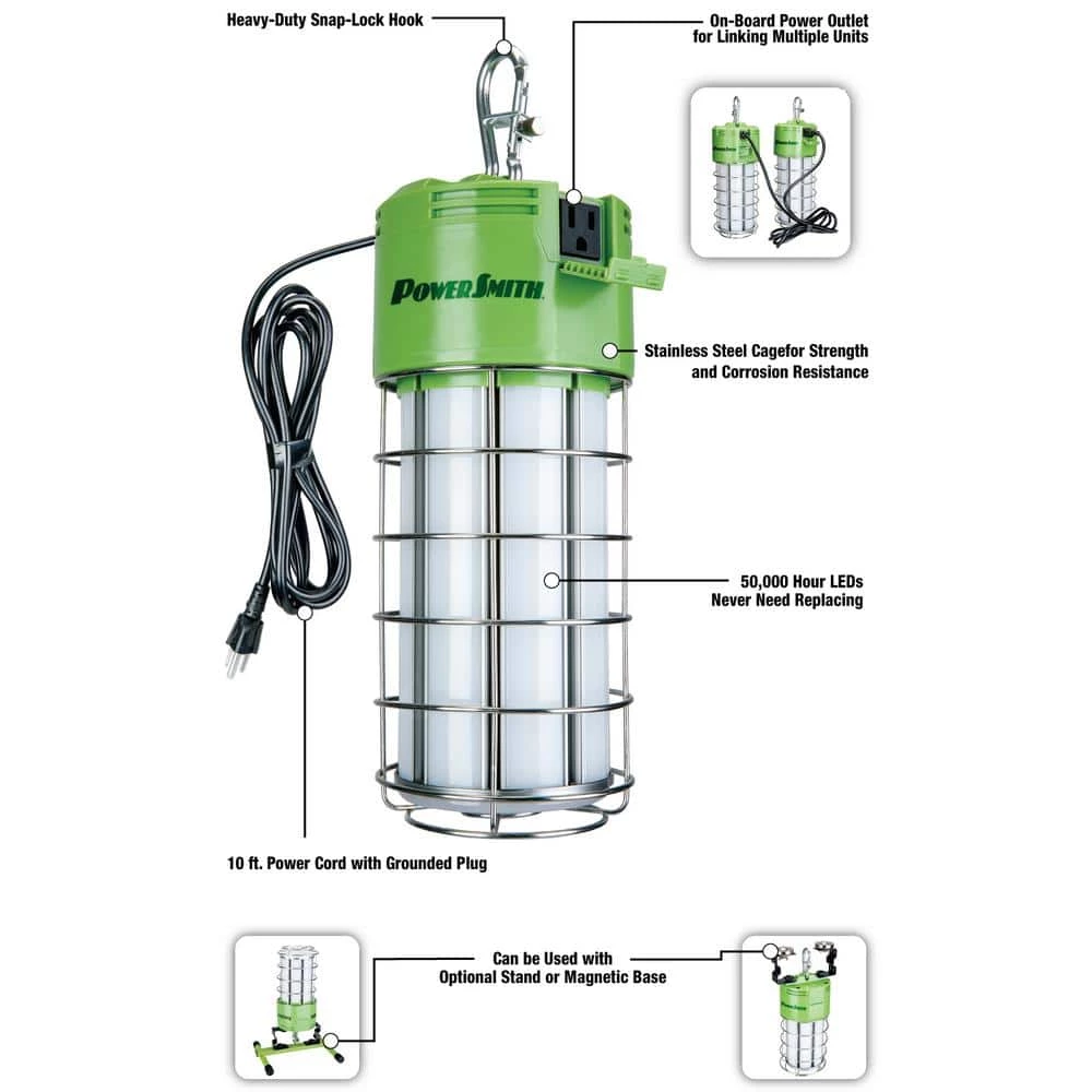 The ALL NEW Power Smith 18,000 Lumens High Bay LED Temporary Work Light delivers brilliant 5,000K light for your next industrial project. Whether it’s lighting a hallway for a remodel or lighting a work area on the job, these High Bay LED lights lead in Lumens and capability. A metal carabiner secures the hanging light and a 10 ft. cord can be used to connect multiple high bay lights together with an onboard outlet for daisy chained operation. The all metal cage surrounding the light ensures that your light is ready for commercial and industrial use. An optional magnetic stand or metal stand can be purchased separately to increase the versatility of the light as well.