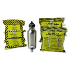 - 1 potable aqua germicidal tablets (50-count) and 1 water bottle 1 l