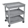 - Ergonomic push handle molded into top shelf for easy maneuverability