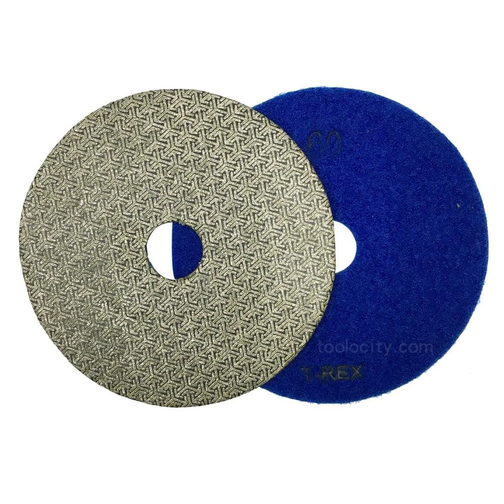 Compared to resin bonded diamond polishing products, electroplated diamond patterns are more effective when used to remove stock from materials. These pads are aggressive and long-lasting. Optimal for use in polishing granite and concrete, also widely used in the fabrication of marble, glass and other types of hard surface counter tops. Electroplated pattern reduces chipping in materials like marble and glass.