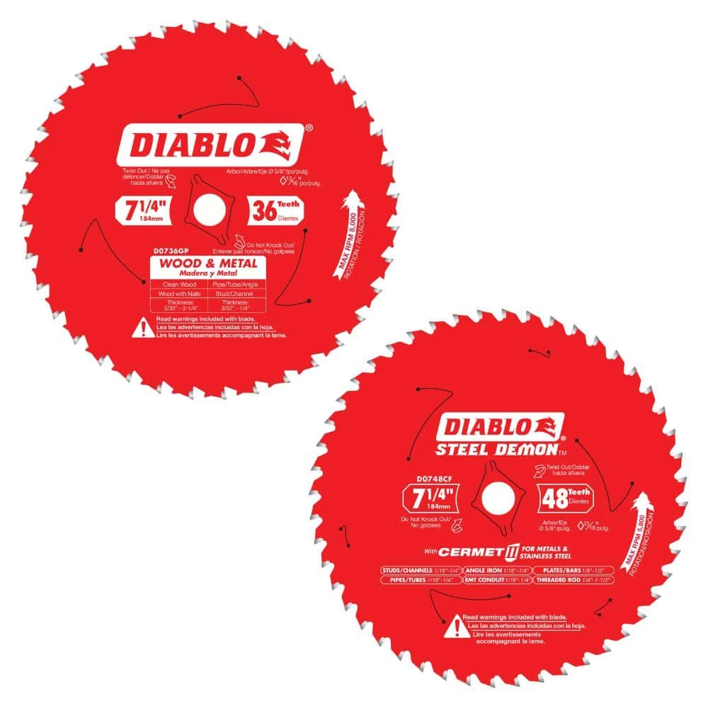 Diablos new 7-1/4 in. Wood and Metal saw blade is the industry’s first multi-purpose saw blade for cutting clean wood and wood with nails, up to 2-1/4 in. material thickness and metal ranging from 3/32 in. to 1/4 in. wall thickness and -1 Dia. The versatility of these new blades provides the ability to use the same blade to cut wood and metal so now users can focus on completing the job more efficiently rather than wasting time with changing tools and saw blades. Diablos new Steel Demon Cermet saw blade series is redefining metal cutting and the jobsite, by introducing safer, exclusive innovation that allows users to cut both mild and stainless steels for up to 40 X longer life versus standard carbide-tipped metal cutting saw blades. The specially formulated Cermet (Ceramic and Metallic blend) teeth provide high heat tolerances and increased hardness for superior wear and ultimate cutting life. Featuring a special Triple Chip Grind and Perma-Shield coating, these blades slice through the toughest of metals to produce precise cuts and burr-free finishes that require no rework.