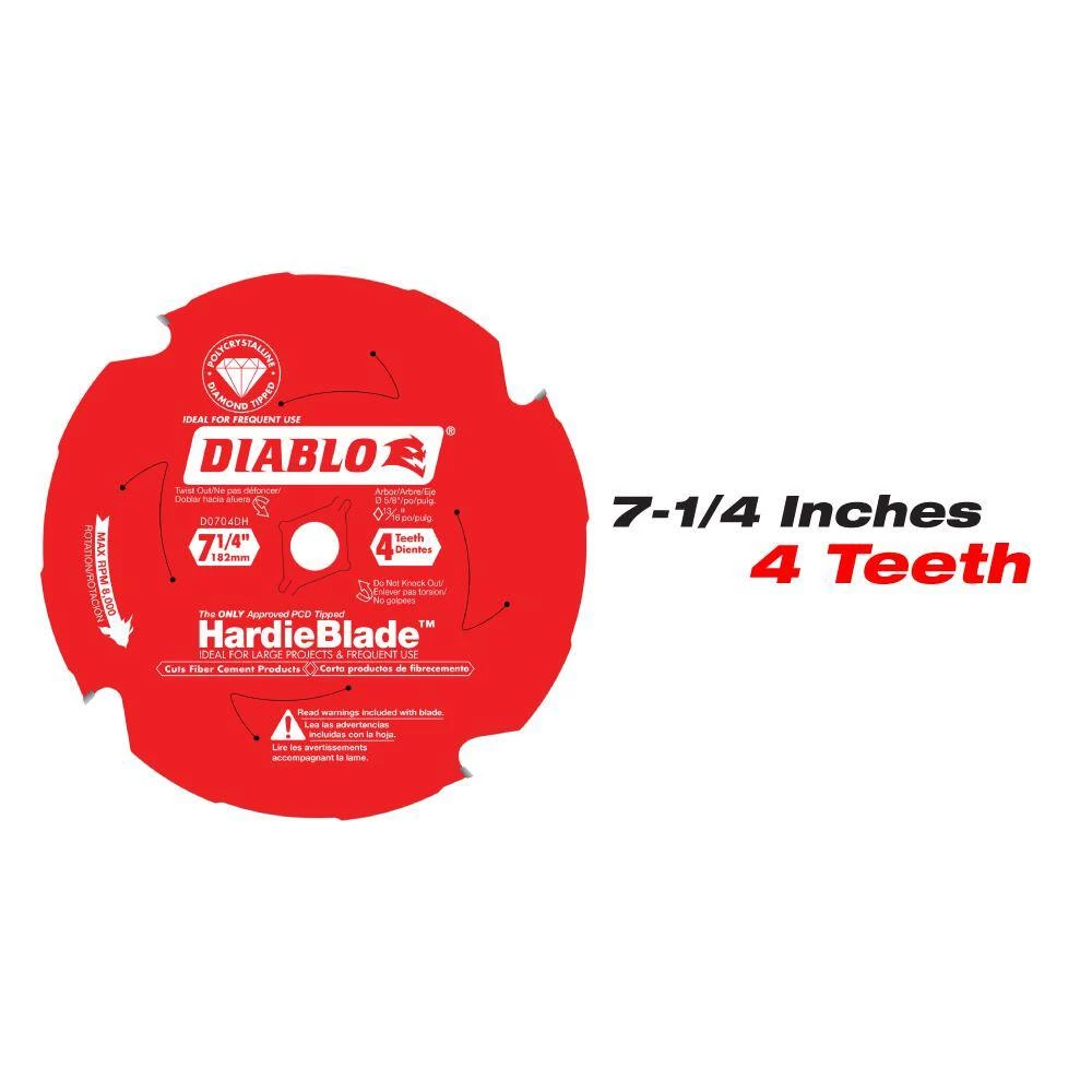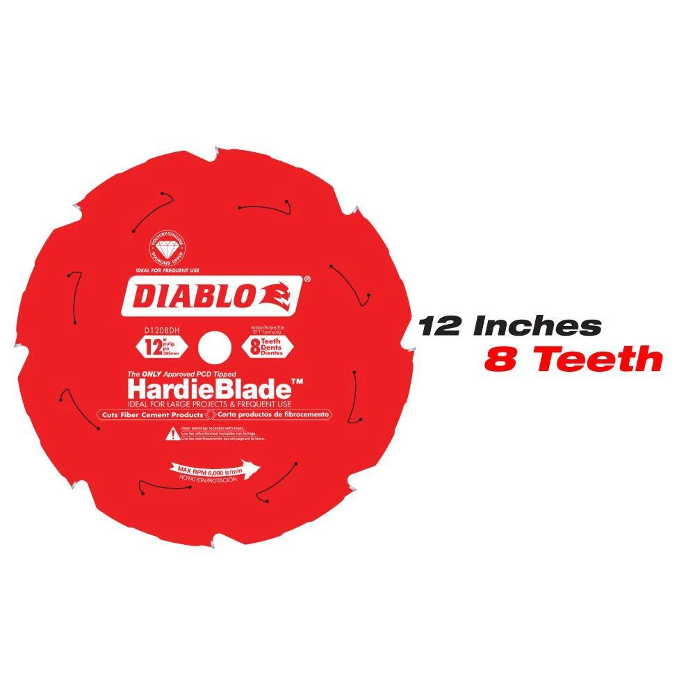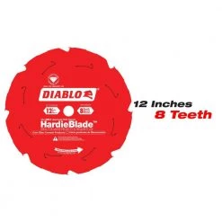 Diablo HardieBlade is the only approved PCD (PolyCrystalline Diamond) tipped fiber cement blade recommended by James Hardie Building Products. Diablo’s co-branded Diablo blade generates up to 50% less respirable dust, while delivering the longest life in all fiber cement materials. The PCD triple chip design offers up to 75-times longer cutting life than standard carbide blades. The laser cut thin kerf design gives fast and precise cuts with less dust and waste. The anti-vibration design stabilizes the blade and reduces noise while cutting and Non-Stick Perma-Shield coating to reduce heat.