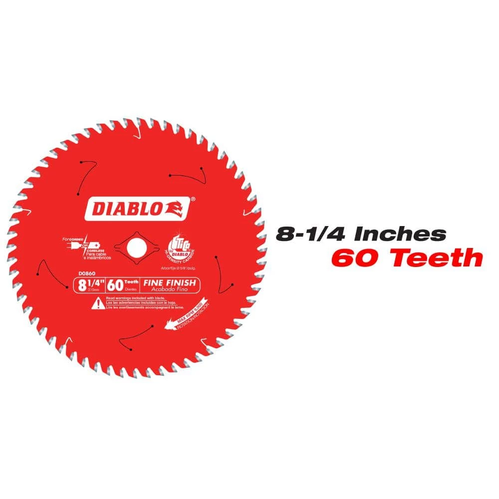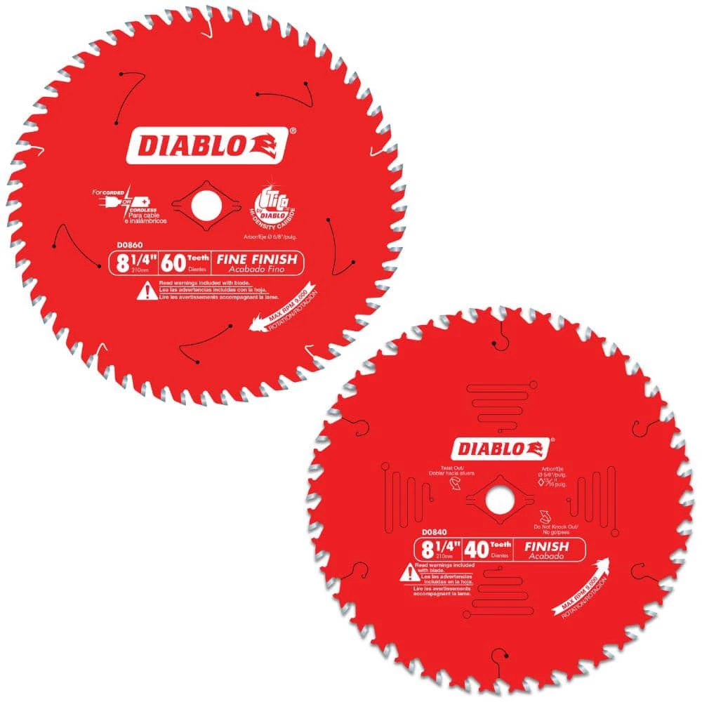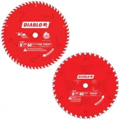 Diablo’s 8-1/4 in. x 40-Tooth Finish blade is ideal for smooth finish crosscuts in hardwood, softwood or plywood. Diablo Finish blades are the perfect choice for excellent rips and crosscuts using a portable saw. They deliver a smoother edge than framing blades, but still provide an excellent combination of cutting speed and long life. A great choice for jobsite finish cuts in 1 X, decking, fencing, fascia and plywood. The 8-1/4 in. x 60-Tooth Fine Finish blade offers the quality that fine cabinetmakers expect with the capability to handle the extreme conditions and portability needed on professional construction jobsites. The combination of Diablo’s application specific TiCo Hi-Density carbide teeth and a super thin-kerf blade produces a remarkably clean, chip-free cut that requires little to no sanding. An excellent choice for fine finish cuts in oak, pine, melamine, veneered plywood and molding.