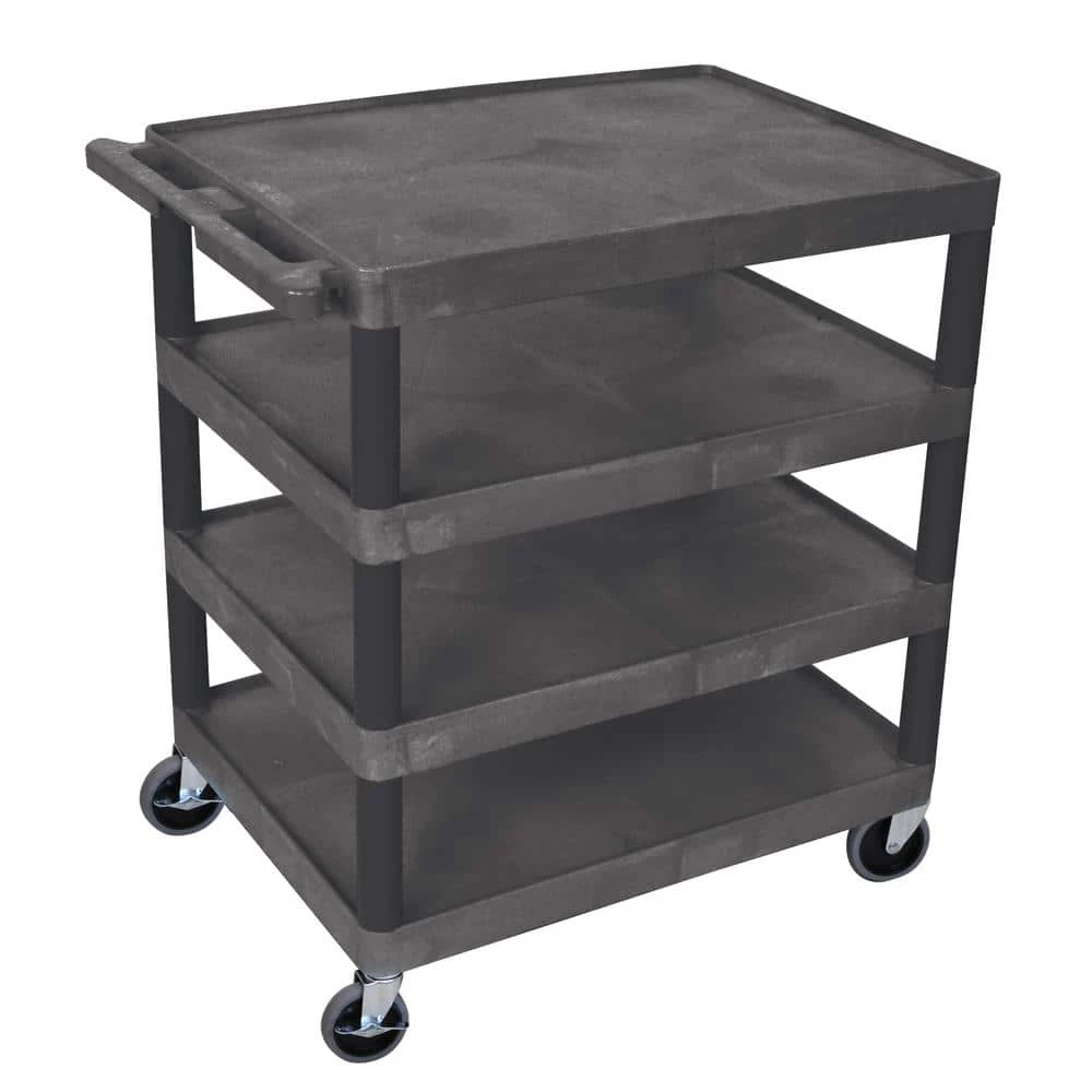 This multipurpose lightweight utility cart is ideal for use as seving or storage cart. The shelves and legs are contructed with an injection molded thermoplastic resin, which will not stain, scratch, dent or rust. Great for a garage storage.