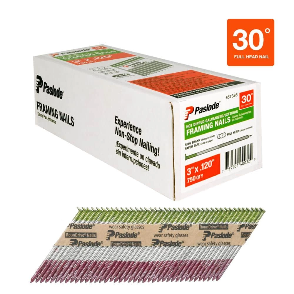 - Use HDG nails with Paslode 30° framing nailers for exterior framing applications