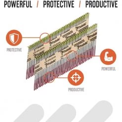 The Paslode Cordless XP Framing Nailer delivers power, performance and comfort for framing applications, without the hassle of a hose and compressor. As the lightest cordless framing nailer available, it’s easy and comfortable to use all day. It drives 2 in. to 3-1/4 in. 30° framing nails flush into the hardest framing materials and will keep you running with 9,000 shots per charge. It comes in a hard case with a battery and charger. This product is bundled with Paslode Hot Dipped Galvanized 30° Framing Nails that are designed and manufactured to match the specs of Paslode framing nailers so your nailer will run smooth, with fewer jams and misfires. Nails drive flush even into the harder woods and LVL’s. Plus, Paslode adds a polymer coating around the shanks and heads to reduce staining, streaking and nail discoloration. To experience non-stop nailing, use Paslode Hot Dipped Galvanized framing nails for exterior framing jobs.