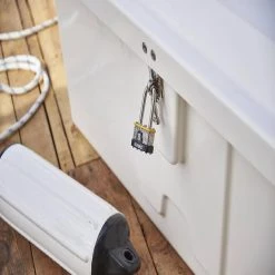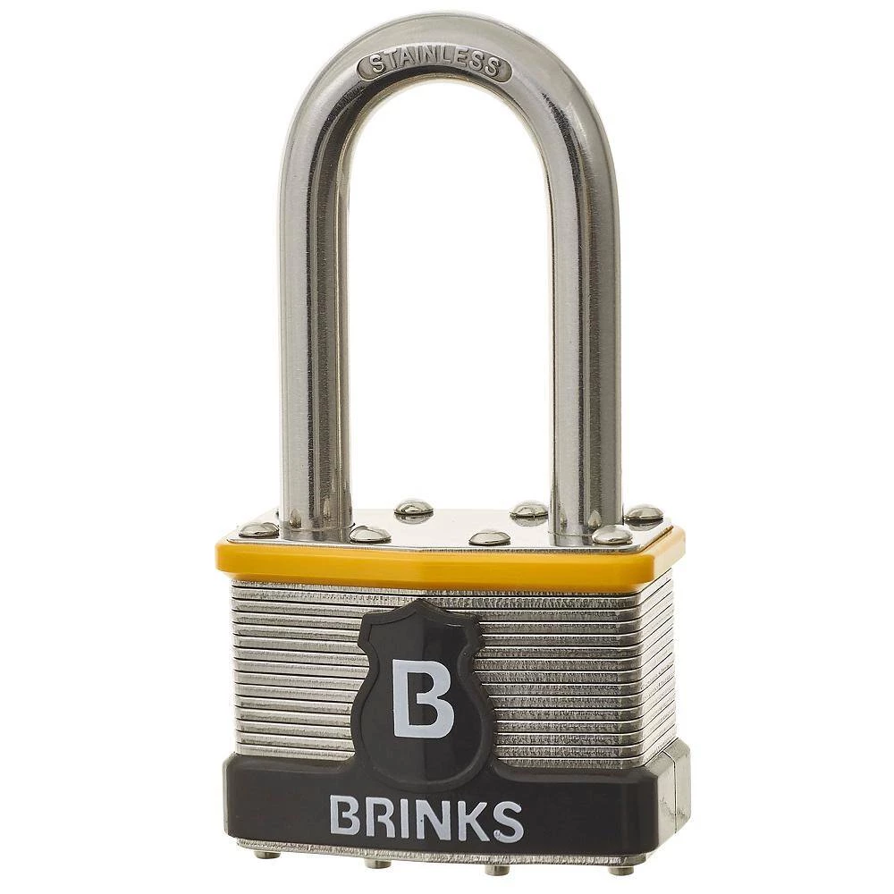 50 mm commercial grade laminated lock body made of Grade 304 stainless steel for superior corrosion resistance. The cut resistant shackle is also made of 304 Grade stainless steel which makes it perfect to use in outdoor application where corrosion can ruin normal locks. Combined with the 2 in. shackle length, this padlock is versatile in any extreme outdoor use. The padlock also features double bumpers that will reduce scratching on surfaces like metal gates and doors, or coolers and pickup storage boxes. The lock includes a brass cylinder that resists picking, and steel locking bolts to resist prying or hammering.