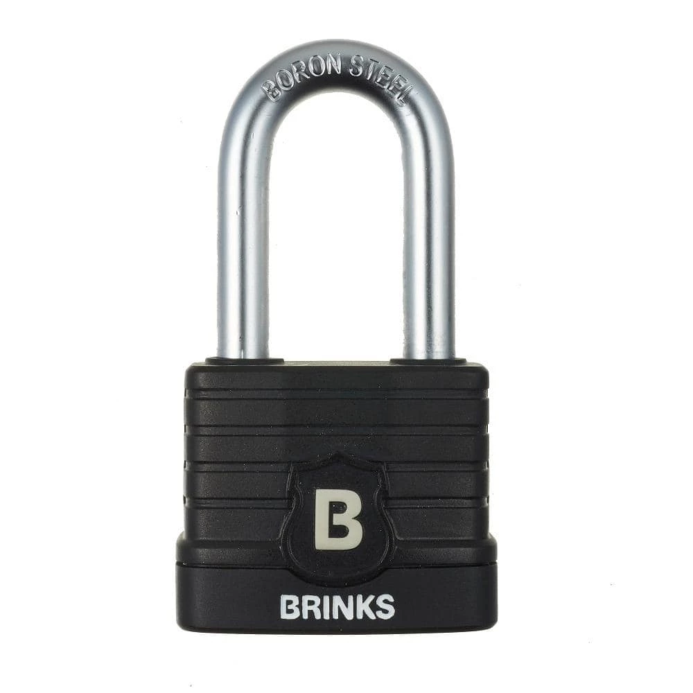 This Brink’s commercial grade padlock is a full 50 mm (2 in.) in size, featuring full body thermoplastic jacket with sliding keyway cover designed to withstand all extreme weather conditions. This lock is made to be outdoors and used in the toughest conditions. This product also features a highly cut resistant 2 in. BORON steel shackle, stainless steel locking bars, and 5 pin cylinder with anti spool pins, making it pick resistant. If you have a tough outdoor environment, this is the lock for you.