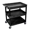 EC-series utility carts are constructed to be reliable while carrying weighty loads. The shelves are made of a material known for its incredible strength to density ratio (HDPE), assuring that each cart is durable without being bulky or cumbersome. While transporting goods, easily guide the service cart amid indoor and outdoor environments using the ergonomic push handle; use locking brakes when your heavy load needs to remain stationary. Our EC tub carts are an impeccable choice for a variety of users. Features: Multipurpose utility cart ideal for use as serving or storage cart and more Shelves and legs are constructed with an injection molded thermoplastic resin, which will not stain, scratch, dent or rust Measures 35.25 in. W x 18 in. D x 31.5 in. H with a clearance between shelves of 22.5 for easy access Includes two 1.625 high flat shelves with 0.25 retaining lip to secure items from sliding off.