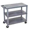 Multipurpose utility cart ideal for use as serving or storage cart, and more. Shelves and legs are constructed with an injection molded thermoplastic resin, which will not stain, scratch, dent or rust. Great for garage or home use.