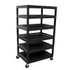 - Shelves and legs are constructed with an injection molded thermoplastic resin, which will not stain, scratch, dent or rust