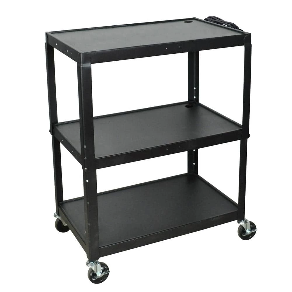 Extra Large Adjustable Height Steel A/V Cart. Multipurpose steel utility cart perfect for use with audio/ video equipment and more. Adjustable height from 24 in. to 42 in. in 2 in. increments.