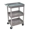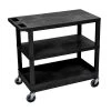 Multipurpose utility cart ideal for use as serving or storage cart, and more. Shelves and legs are constructed with an injection molded thermoplastic resin, which will not stain, scratch, dent or rust. Great for garage or home use.