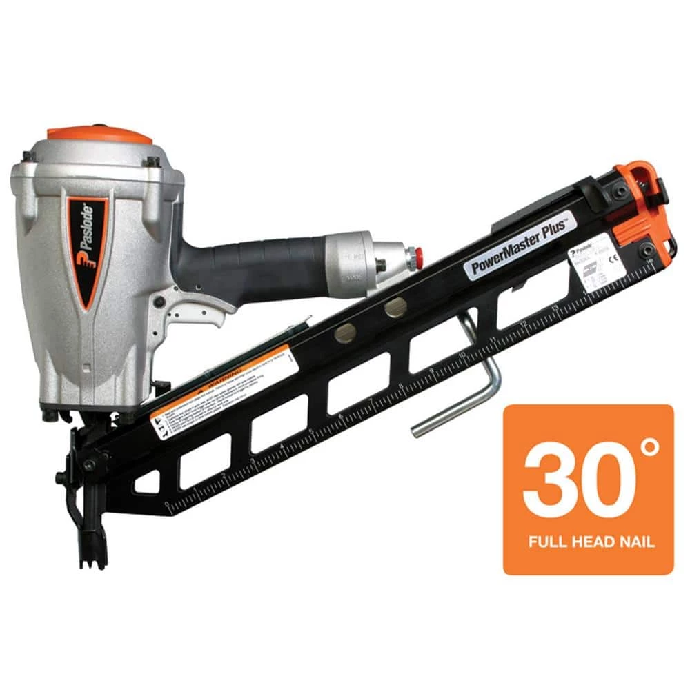 With the Paslode PowerMaster Plus framing nailer system, you’ll have the job done in no time. Heavy-duty jobs require a heavy-duty nailer with a powerful performance in a lightweight design. That’s why the pros turn to the proven performance, durability and driving power only a Paslode pneumatic framing nailer can provide. This low-recoil nailer offers a center of gravity close to the trigger for great balance and less arm fatigue. When used with Paslode framing nails, this nailing system’s heavy-duty power can help you frame walls faster to bring jobs in on time, every time.
