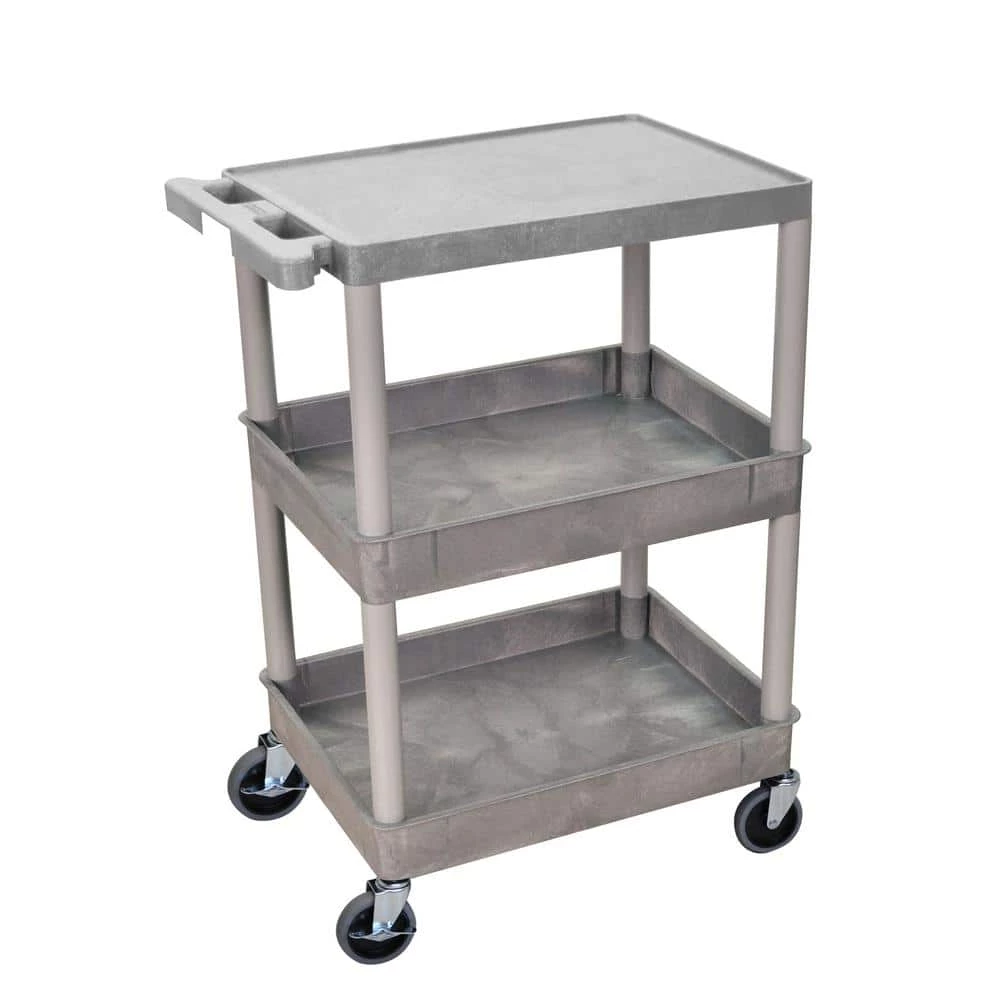 This multipurpose utility cart is ideal for use as serving or storage cart, garden wagon and more. Great for garage or home usage. Shelves and legs are constructed with an injection molded thermoplastic resin, which will not stain, scratch, dent or rust.