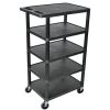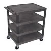 This multipurpose utility cart ideal for use as a storage cart, serving, garden wagon and more. Great for garage use. Shelves and legs are constructed with an injection molded thermoplastic resin, which will not stain, scratch, dent or rust.
