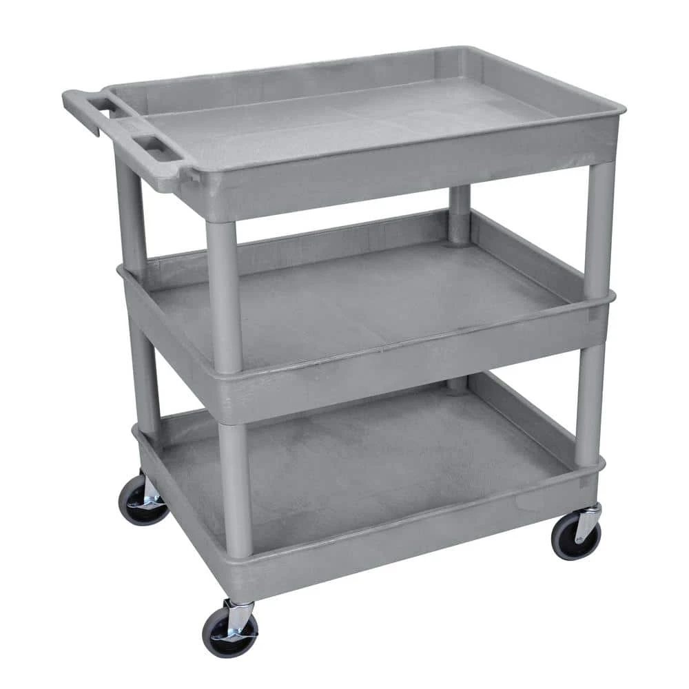 This multipurpose utility cart is ideal for use as serving or storage cart, garden wagon and more. Great for garage or home usage. Shelves and legs are constructed with an injection molded thermoplastic resin, which will not stain, scratch, dent or rust.