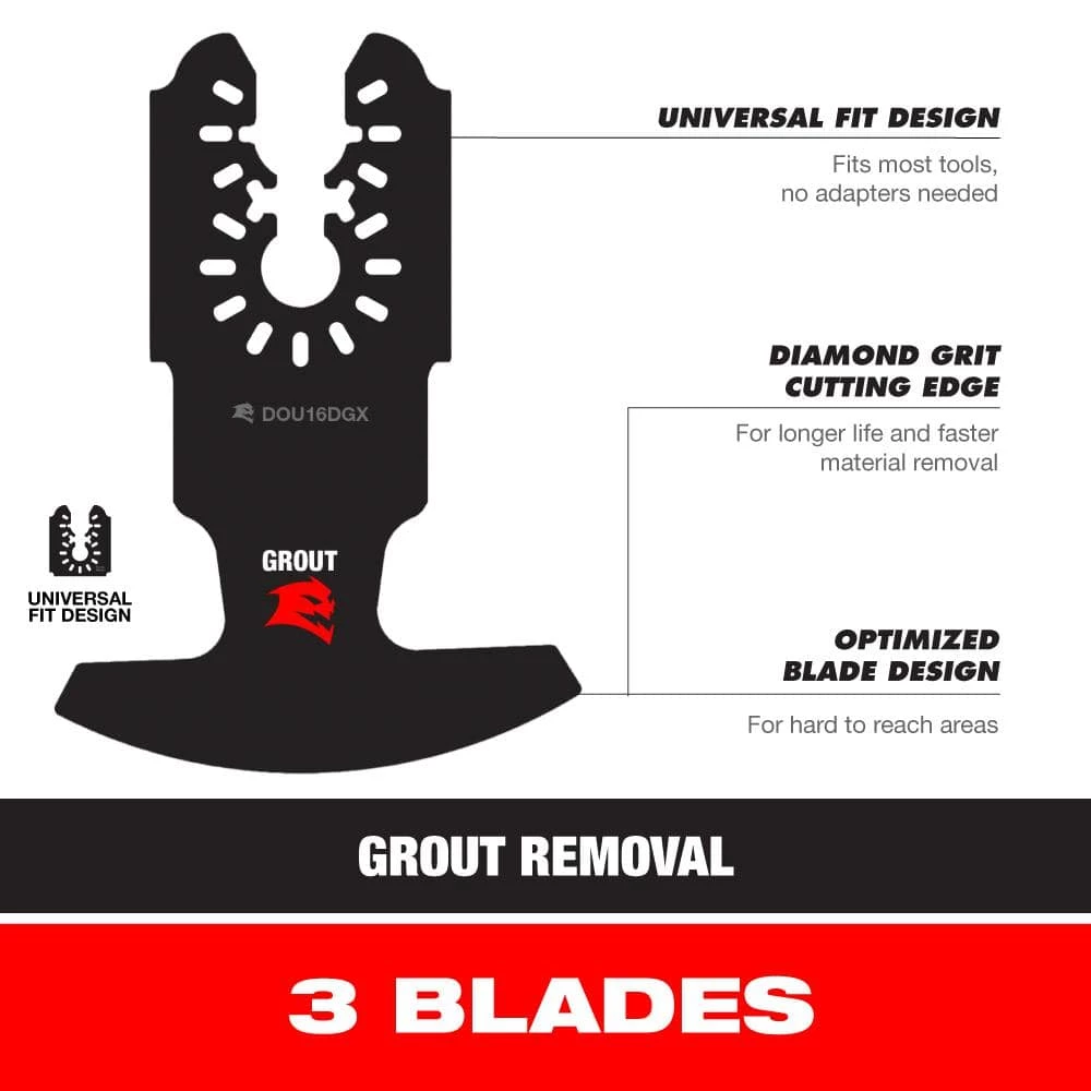 Diablo universal fit diamond grit oscillating blades feature application specific designs that deliver maximum durability and longer life grout removal applications. An optimized blade design delivers faster material removal in hard to reach areas. The blade’s universal fit, adapter-free design easily attaches most tools, with the exception of Starlock tools.